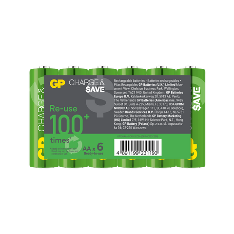 Reliable, pre-charged AA rechargeable batteries that you can re-use 100+ times*. Make long-term savings across the lifespan of each battery and reduce waste by avoiding the need to frequently purchase disposable batteries. As powerful runtime as single-use batteries, retains charge in storage for 12 months^ and able to deliver consistent performance, even in extreme temperatures. Ready to use straight out of the box, these AA rechargeable batteries are ideal for powering all your everyday devices like kids' toys, electronics and remote controls. Ran out of power? Recharge in just 4 hours using the Charge & $ave E422 battery charger.