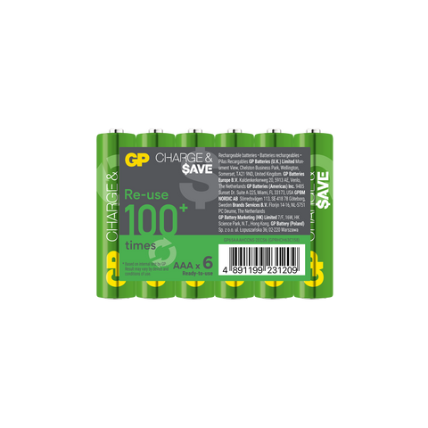 Reliable, pre-charged AAA rechargeable batteries that you can re-use 100+ times*. Make long-term savings across the lifespan of each battery and reduce waste by avoiding the need to frequently purchase disposable batteries. As powerful runtime as single-use batteries, retains charge in storage for 12 months^ and able to deliver consistent performance, even in extreme temperatures. Ready to use straight out of the box, these AAA rechargeable batteries are ideal for powering all your everyday devices like kids' toys, electronics and remote controls. Ran out of power? Recharge in just 4 hours using the Charge & $ave E422 battery charger.